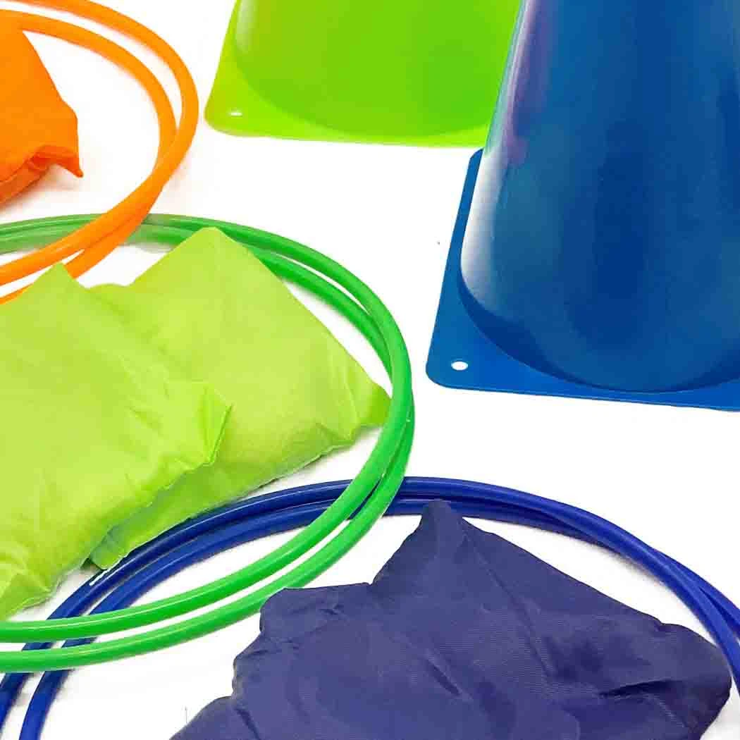 - Multi-purpose cones: Catch beanbags, set up slalom courses, or mark boundaries with these versatile cones.