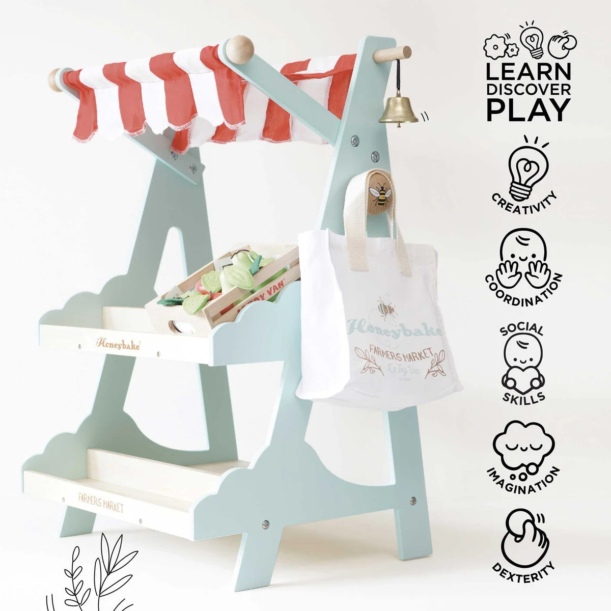 Painted with water-based, child-safe paints, this must-have addition for every pretend play space offers endless fun while supporting learning and development through hands-on play.Ready to bring the market magic home and inspire joyful learning?