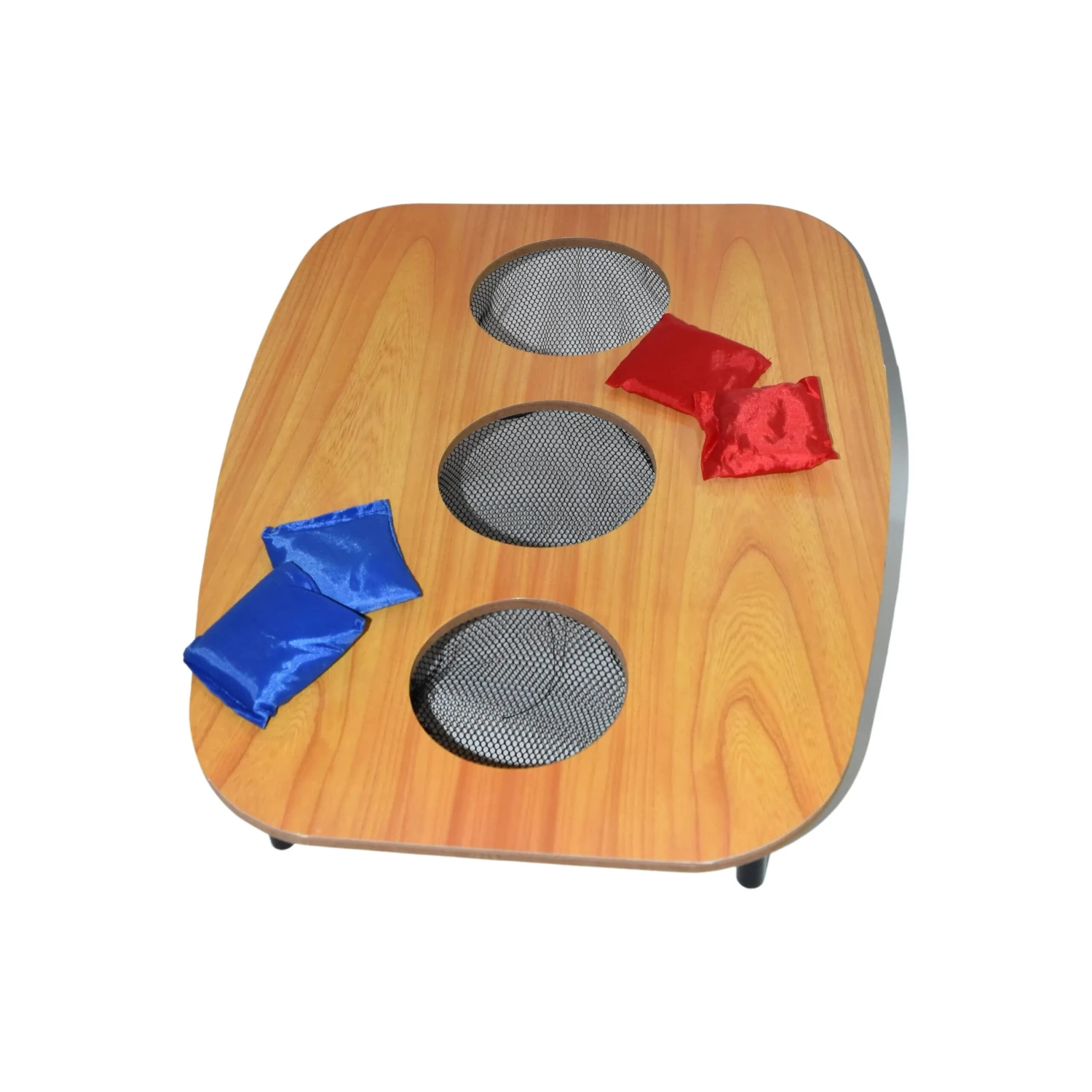 - Complete Set: Includes a single deck Cornhole board and 4 colourful bean bags (2 red, 2 blue).