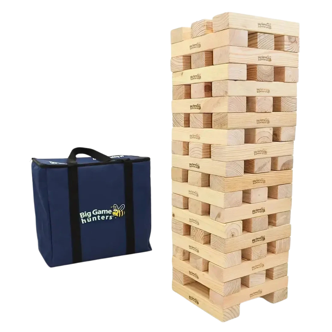 Challenge your family and friends with the Super Giant Hi-Tower, a supersized take on the classic Jenga game. Our Super Giant Hi-Tower comes with a padded bag for easy storage and portability.